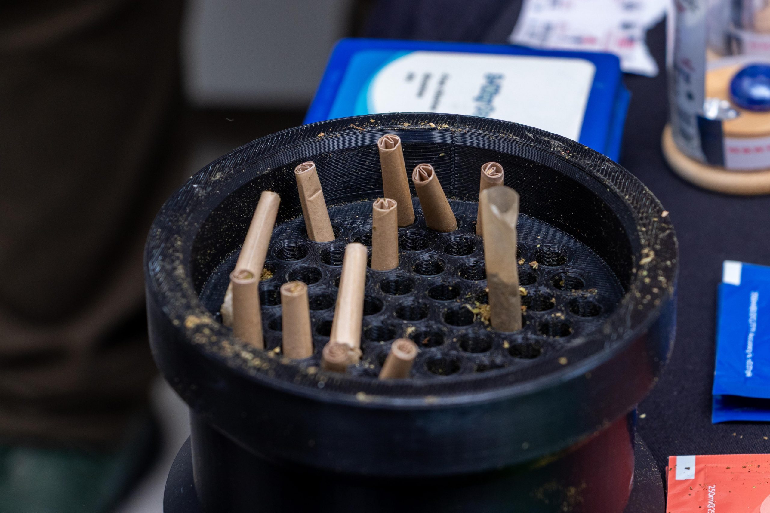 Sistema de empaquetado de cigarrillos de marihuana listos para la comercialización.