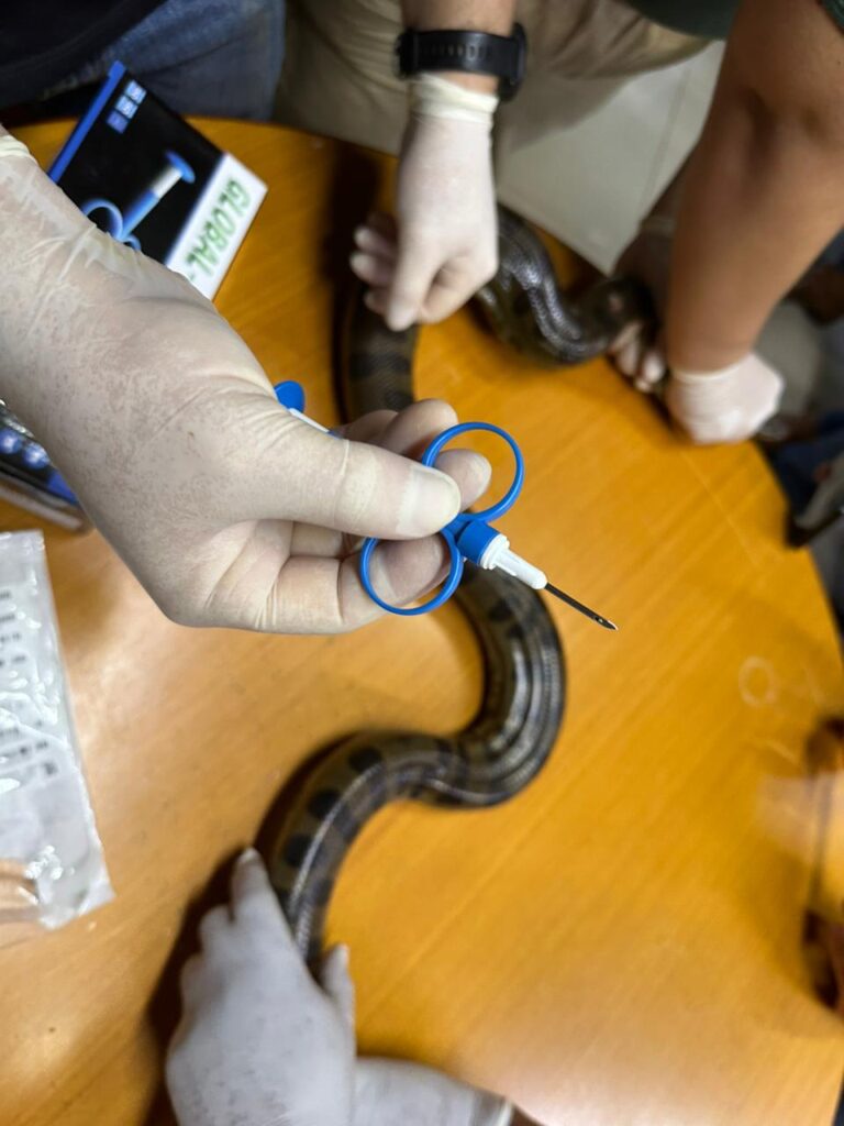Colocan microchips para monitorear la población del mbói jagua. Foto: Gentileza