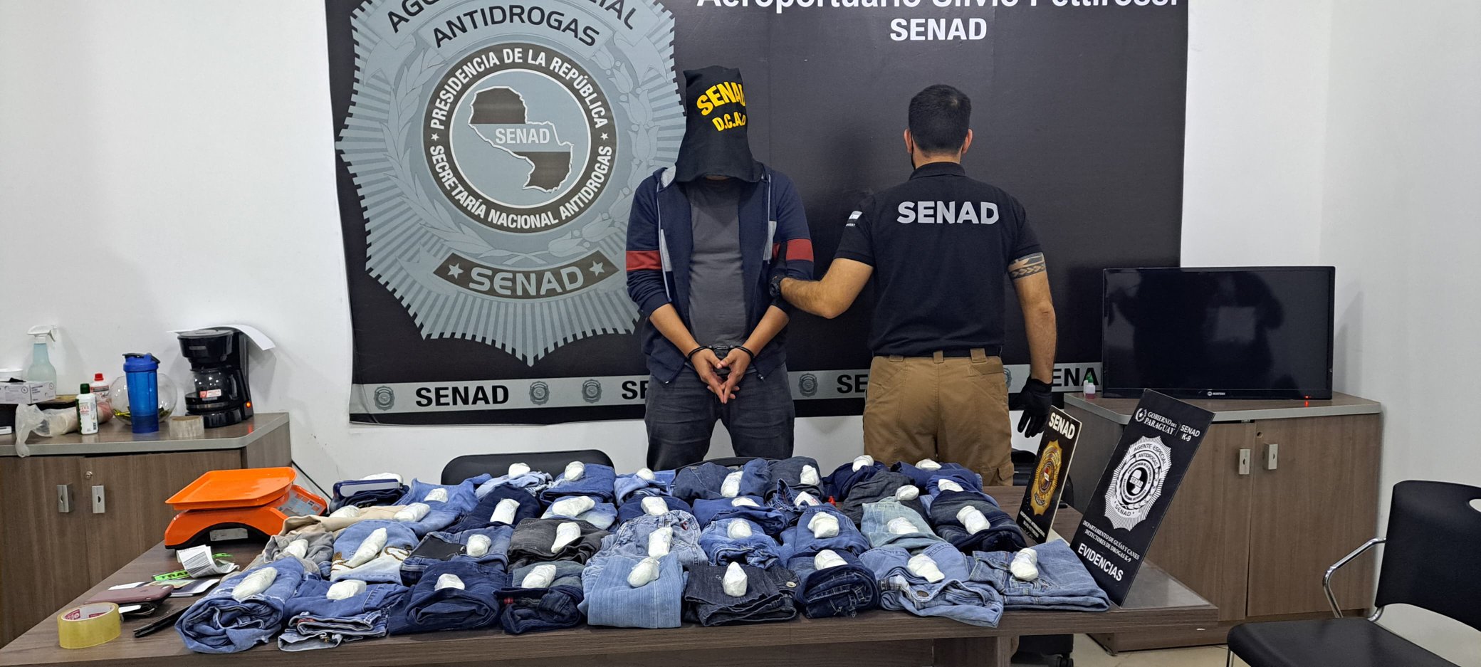 El hombre fue identificado como Matías Daniel Galeano Ortellado, de nacionalidad paraguaya, y pretendía viajar con drogas que fueron ocultas entre pasa cintos de varios pantalones que iban dentro de la maleta.