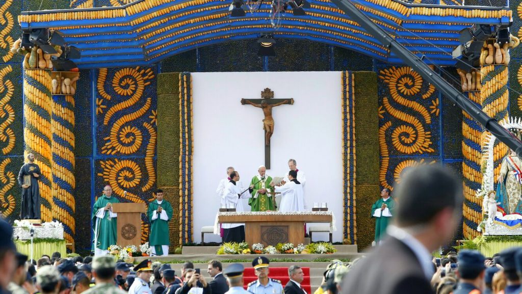 El papa ofició una multitudinaria misa en la explanada de la Basílica de Caacupé. Foto: