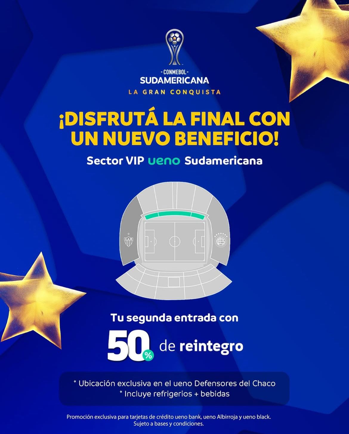 “El sector vip ueno sudamericana es la mejor manera de vivir la final de la Sudamericana como nunca antes, sintiendo cada jugada en primera persona y con una comodidad inigualable. Porque queremos que la experiencia del fútbol siempre sea memorable”, complementó.